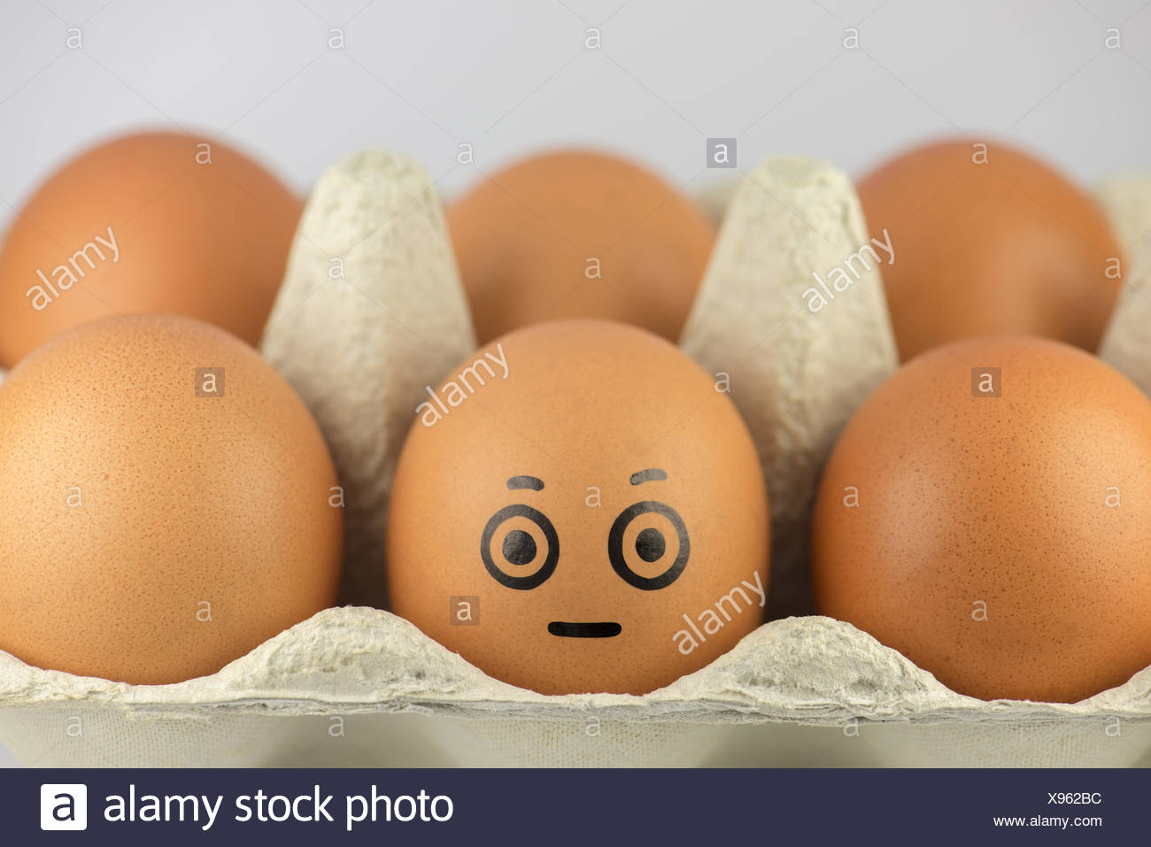 Huevo Con Una Cara En Un Carton De Huevos Fotografia De Stock Alamy